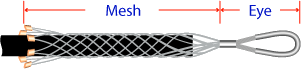 Wire mesh tube with an eye at one end. Plastic coated strands increase the life of the grip, provide a bearing surface on underground pulls to increase the ease and safety of installation and removal. The pulling eye is flexible and stress relieving.